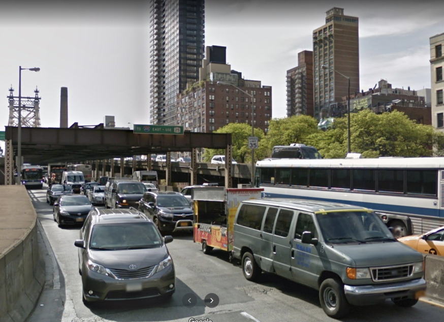 Traffic heading into Manhattan from the Queensboro Bridge (Google Maps)