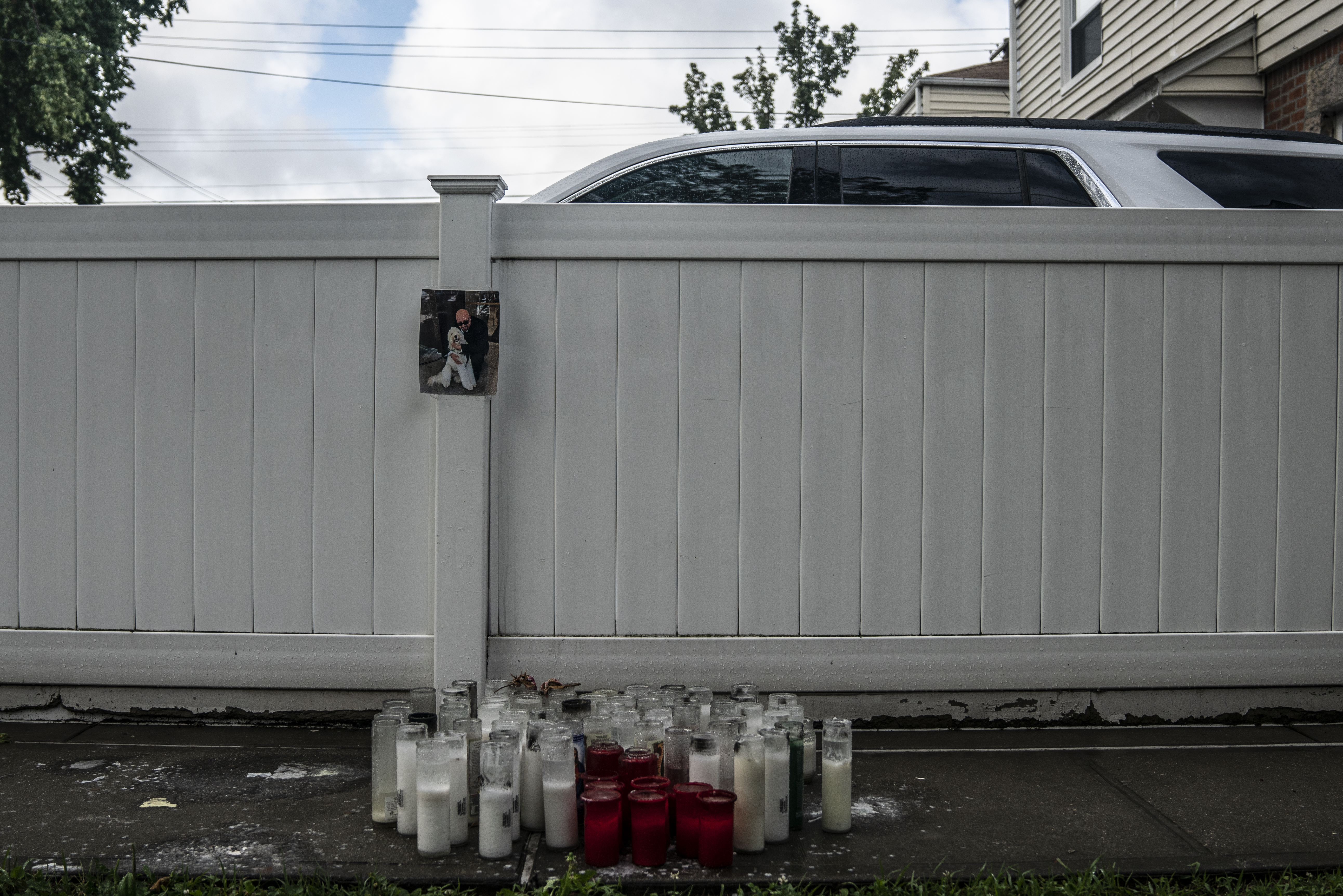 Hiram Alejandro Durán/THE CITY A memorial for George Zapantis on the walkway of his Queens home