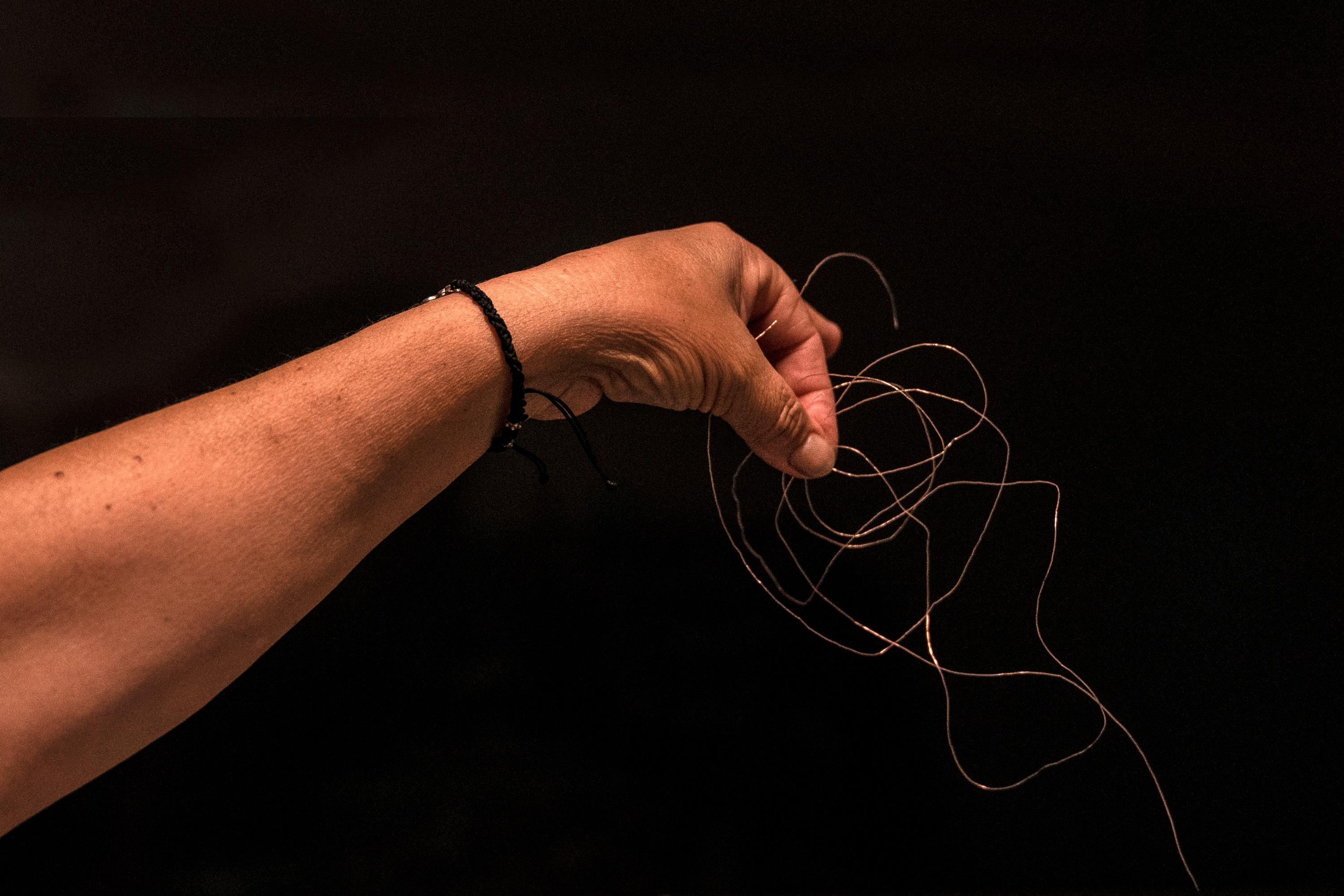 She placed both wire fragments in a plastic bag.