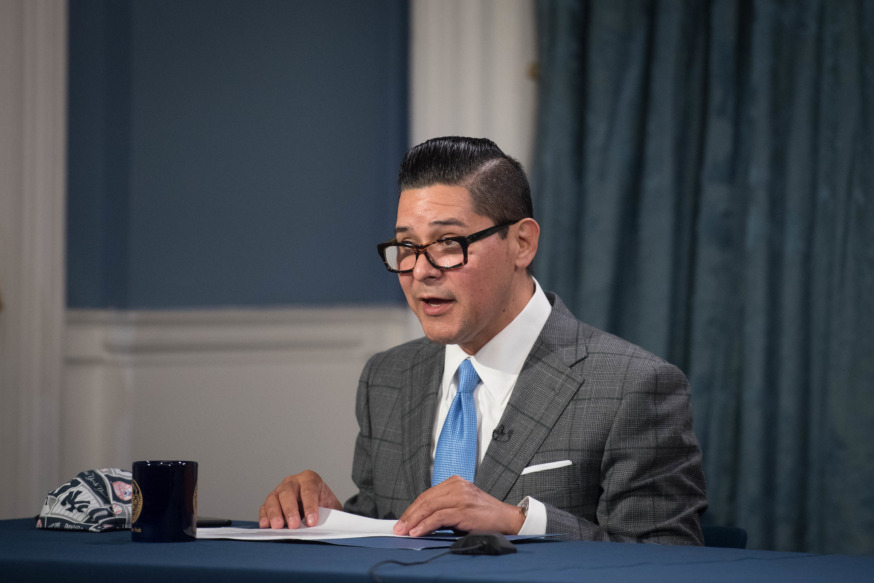 Schools Chancellor Richards Carranza outlined the reopening plan for NYC public schools in the fall at City Hall today. (Michael Appleton/Mayoral Photography Office)