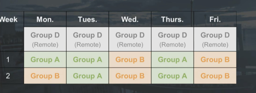 Students who attend schools that can accommodate roughly one third of their student body under the guidelines will have classes one to two days a week on a rotating basis.