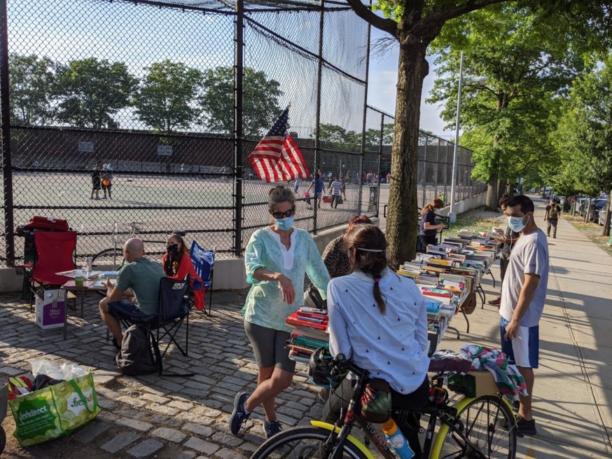 The book swap shares a corner with the Sunnyside Greenmarket on Saturdays, which has been supportive of the initiative. One vendor brought over a tarp when it unexpectedly rained one Saturday.