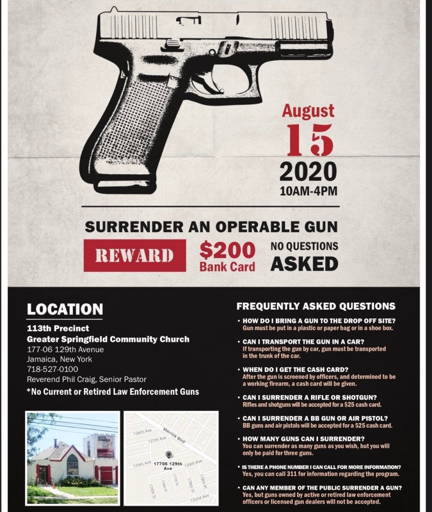 The Queens District Attorney’s office– with the support of the NYPD–is hosting two gun buyback events this month as a means to get deadly weapons off the street.