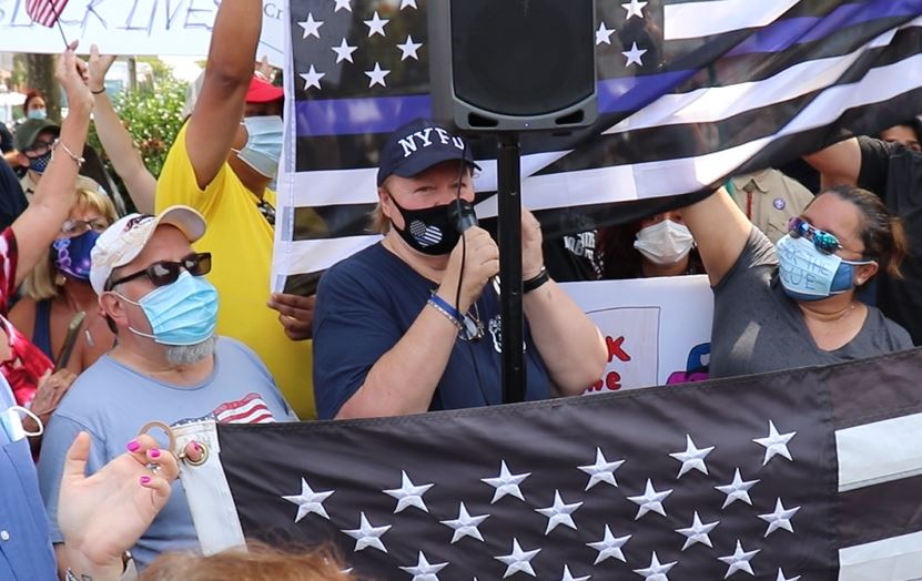 Diane Ballek speaking at the pro-police rally on Aug. 22 (Michael Dorgan, Queens Post)