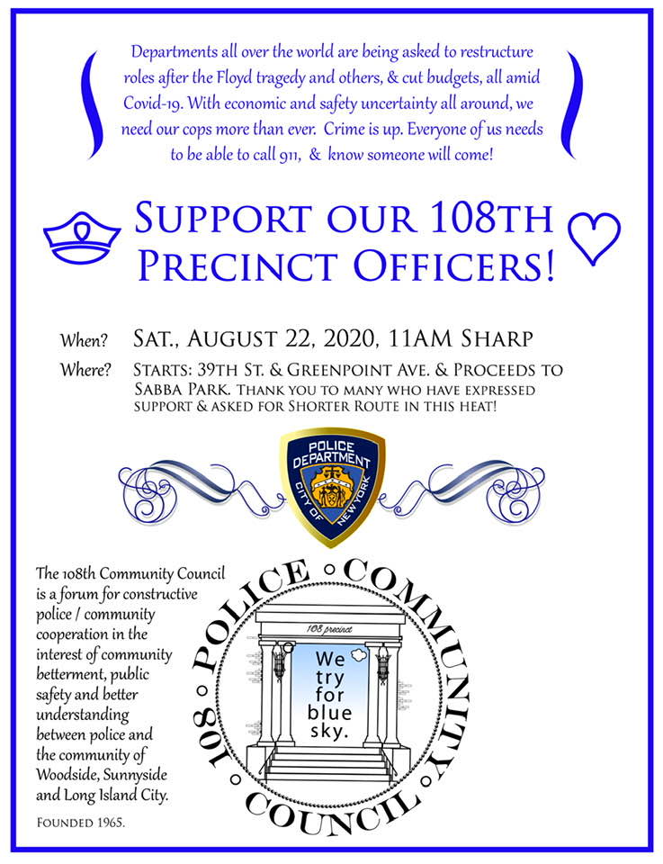 Support Our 108th Precinct Officers Flier (provided by Diane Ballek)