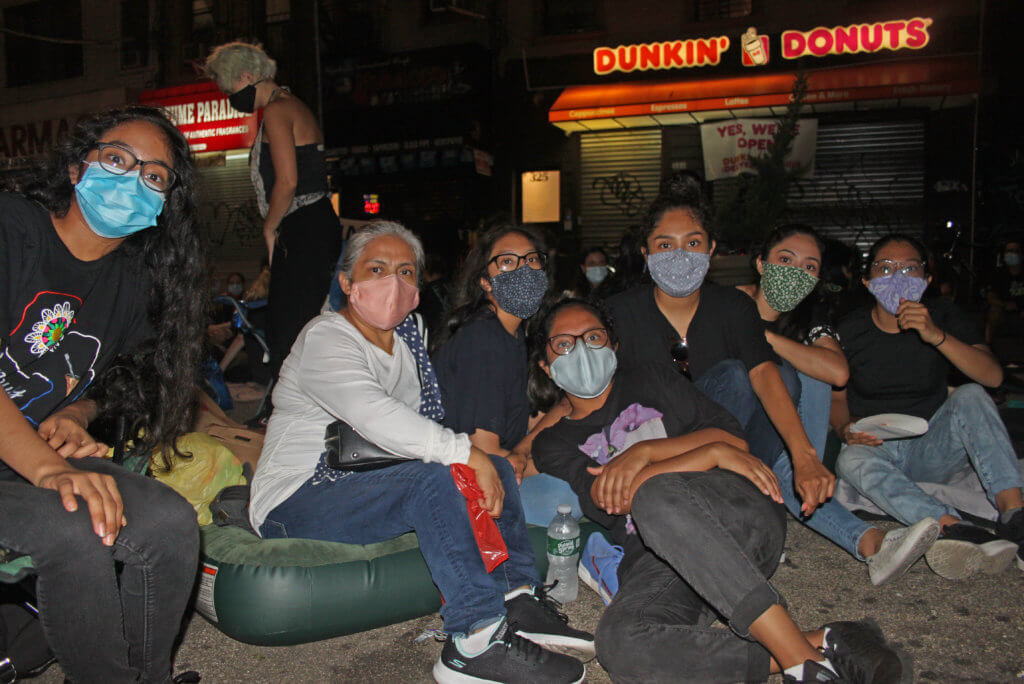 Several dozen protesters set up camp by the station’s triangle that’s closed off to traffic. Organizers gathered bedding and pizza, set up a projector, and had music playing throughout the night.