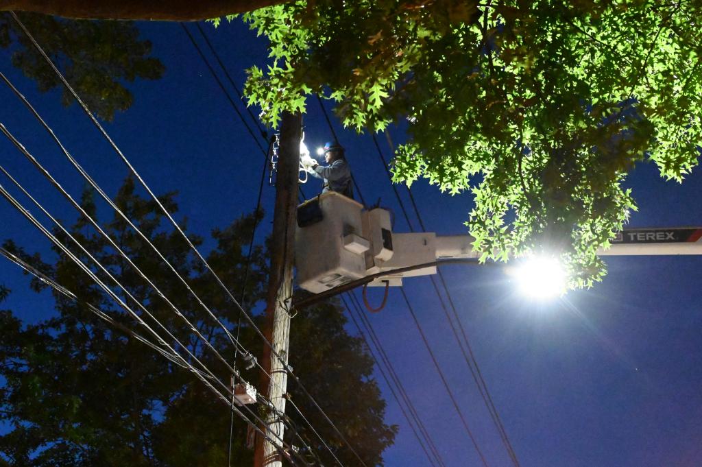 A Con Edison worker repairs a power line in Middle Village (Con Edison)