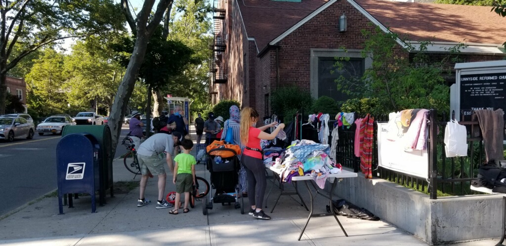 It has a name now – Sunnyside Church Clothing Greencycle – and it’s there every Wednesday afternoon at 3 p.m. for donating or gathering. Everything is free, and it’s kind of fun to watch the confusion on the faces as they try to figure out what that means. It’s not complicated. Everything is FREE! Just take what you want.