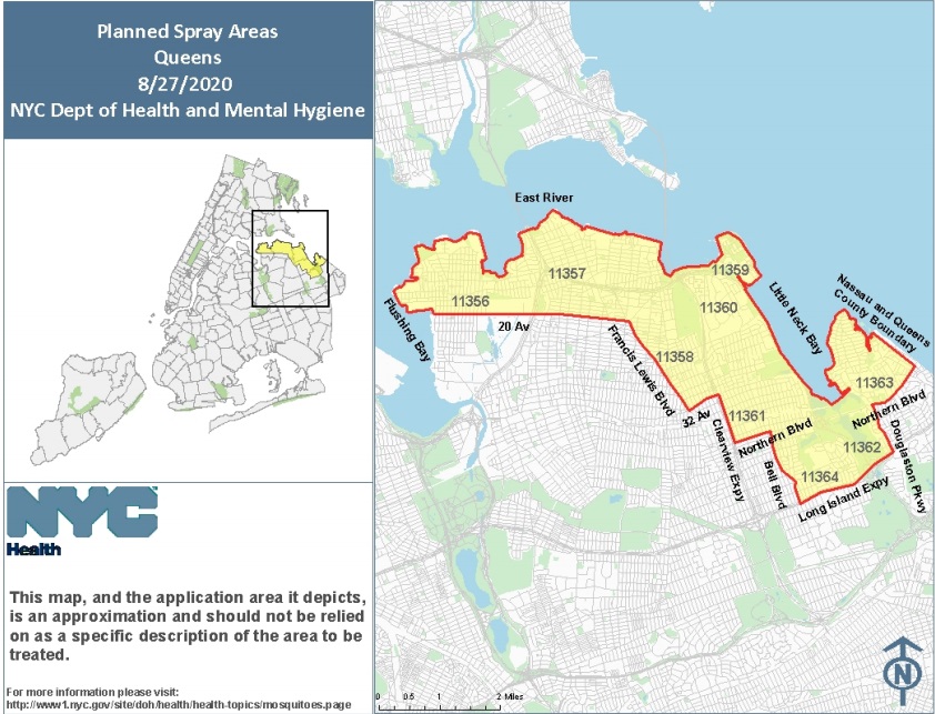 The spraying will occur in parts of the 11356, 11357, 11358, 11359, 11360, 11361, 11362,