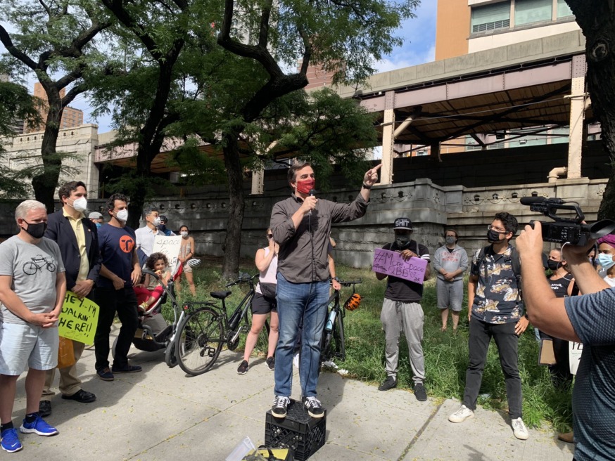Several elected officials joined bike advocates at the rally Sunday, including City Council Members Ben Kallos and Jimmy Van Bramer, State Sens. Mike Gianaris and Jessica Ramos and Manhattan Borough President Gale Brewer.