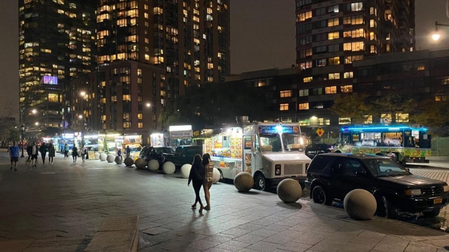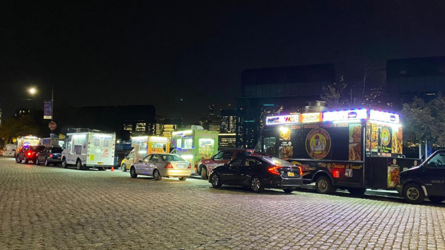 Food Vendors along Center Boulevard, outside Gantry Plaza State Park on Oct. 21, 2020 (Michael Dorgan, Queens Post)
