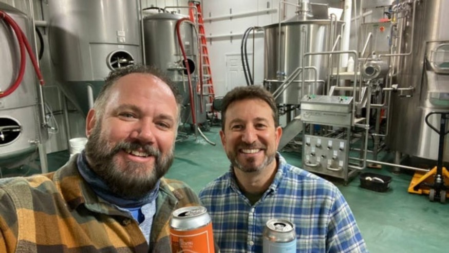 Kyle Hurst and Scott Berger celebrate a toast to their purchase inside the new premises in Geneva, NY (Image provided by Big aLICe Brewing Company)