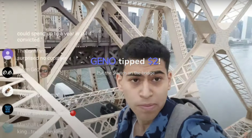 A screenshot of Sanchez’s livestream on top of the Queensboro Bridge (via Smooth Sanchez IRL youtube)