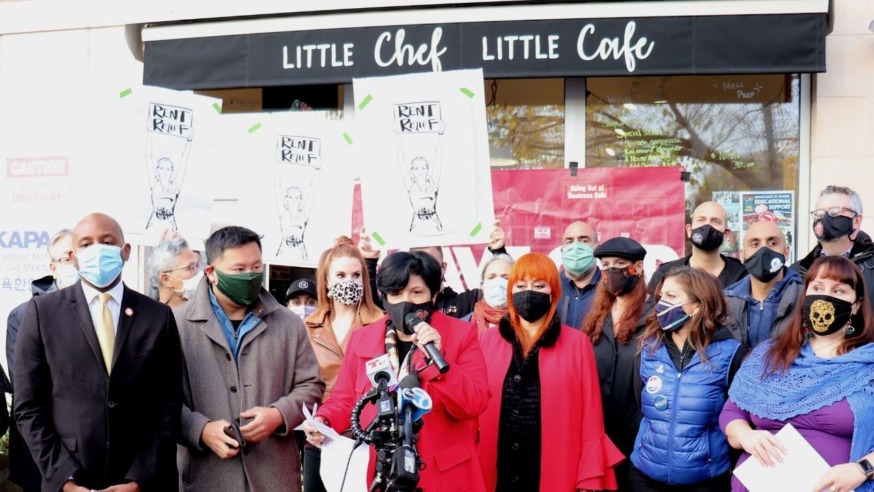 Elected officials and a coalition of Queens business owners met outside Little Chef Little Café, located at 5-43 48th Ave., and called on the federal government and local leaders to help them get through the economic crisis and navigate stricter lockdown measures before they are forced to permanently close.