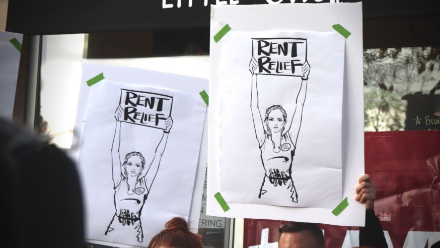 Several supporters carried signs with “rent relief” written across them (Michael Dorgan, Queens Post).