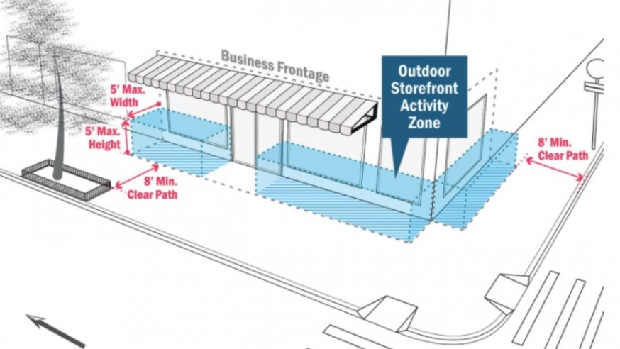 The program requires participating businesses to keep an eight-foot clear path of sidewalk from the curb. Retailers cannot use the space of adjacent businesses.