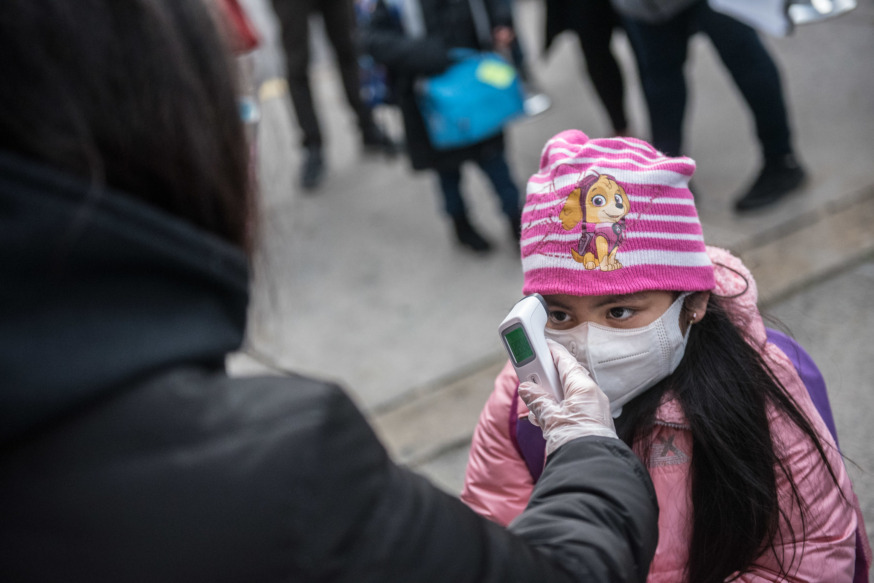 A student’s temperature is taken at a Bronx public school (Michael Appleton/Mayoral Photography Office)
