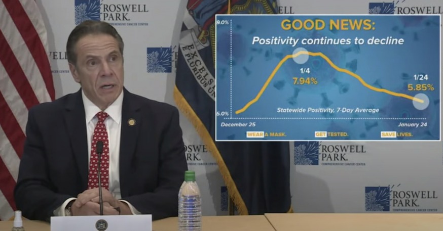 The figures show that New York has got past the COVID-19 peak period that followed from holiday gatherings. As a result, Cuomo said, the state is continuing to reopen the economy.