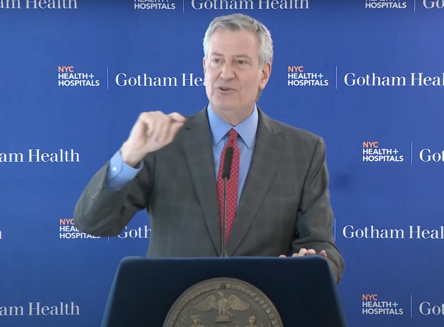 Mayor Bill de Blasio announced the opening of a “COVID-19 Center of Excellence” in Jackson Heights Wednesday (NYC Mayor’s Office Livestream)