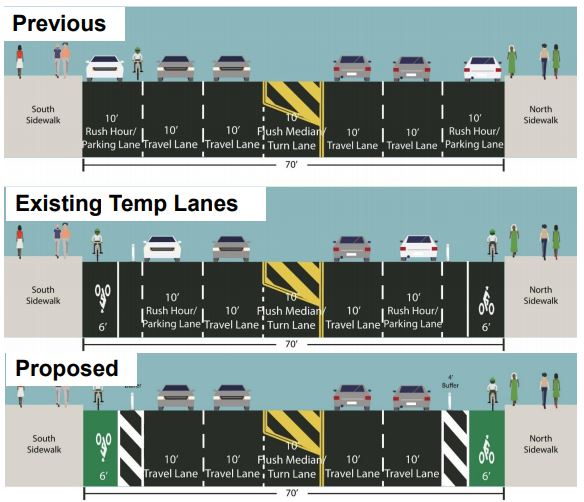 Some board members– as well as bicycle advocates– are demanding that jersey barriers be put down to separate the protected bicycle lane from motorists.