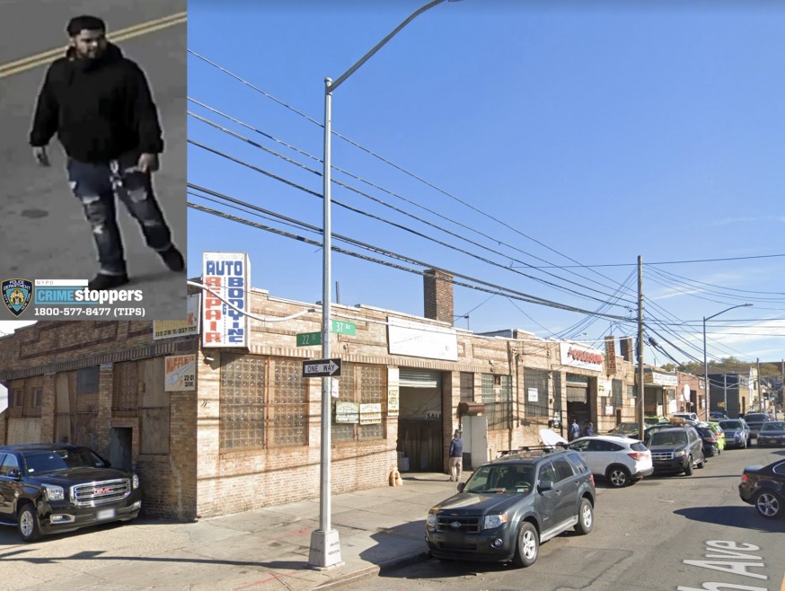 Suspect and A&P Auto Body and Repair (NYPD/ Google Maps)