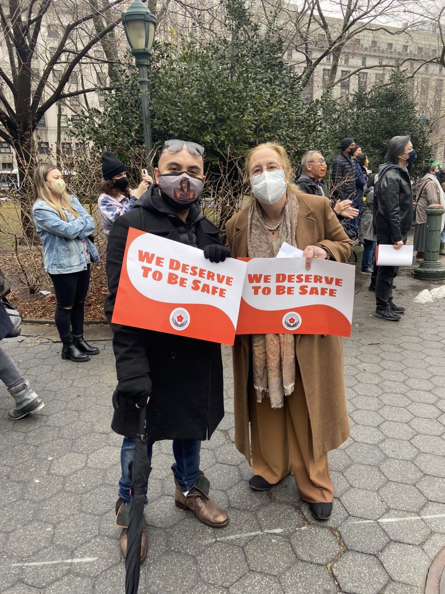 Western Queens Council Candidate Steven Raga with Manhattan Borough President Gale Brewer at an earlier rally against Asian hate in Manhattan (Steven Raga via Twitter)