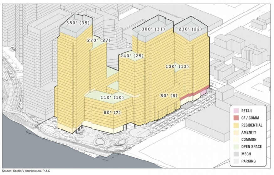 The development would consist of three residential towers – one 22 stories, another 31 stories and a third 35 stories, according to an Environmental Impact Statement (EIS) filed with City Planning last month by Astoria Owners LLC.