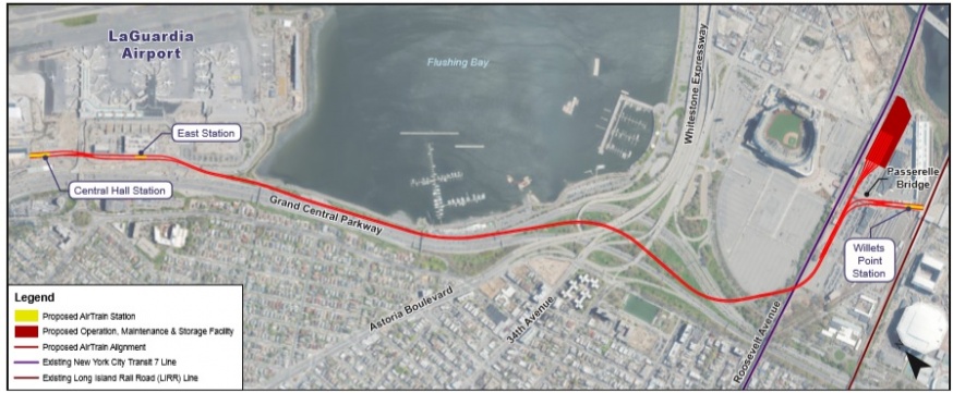 The plan calls for three stations, two at LaGuardia Airport terminals and the third at the Willets Point Station.