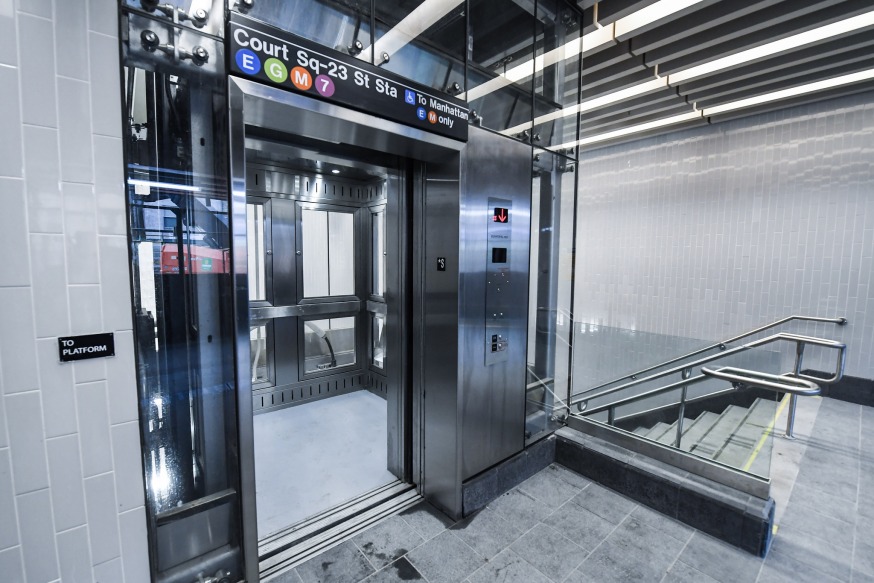 A new elevator at the Court Square-23rd Street station (Photo: Marc A. Hermann / MTA)
