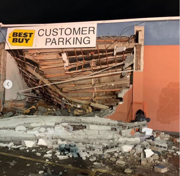 The roof of a Best Buy warehouse in Woodside partially collapsed Monday night.