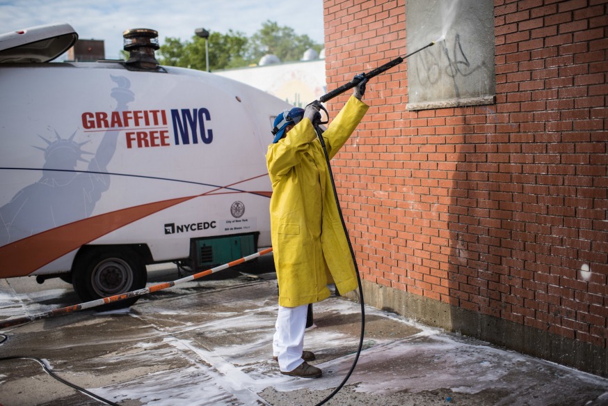The city plans to employ 10,000 New Yorkers to remove graffiti and clean city parks, Mayor Bill de Blasio announced Tuesday.