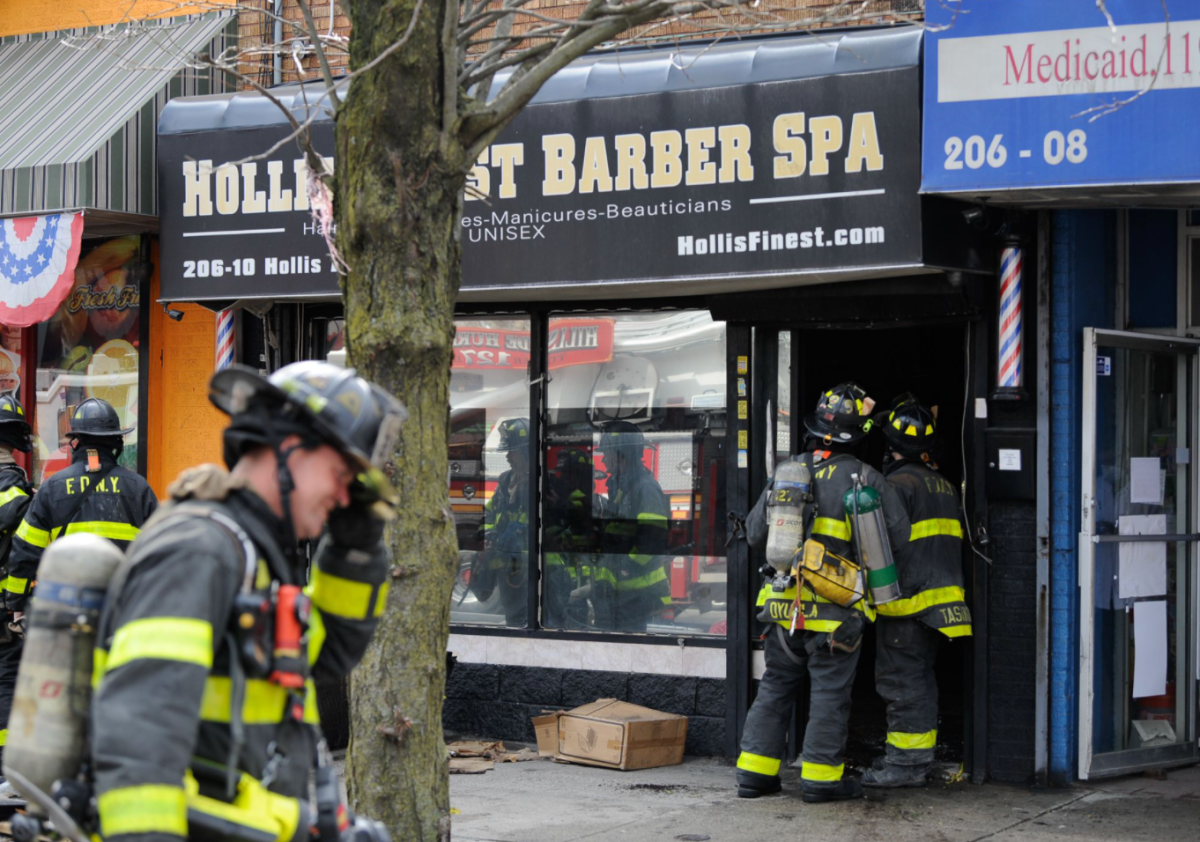 Emergency calls about the fire, which broke out inside Hollis Finest Barber Spa, located at 206-10 Hollis Ave., around 9:30 a.m., on Wednesday, April 7, according to the FDNY.
