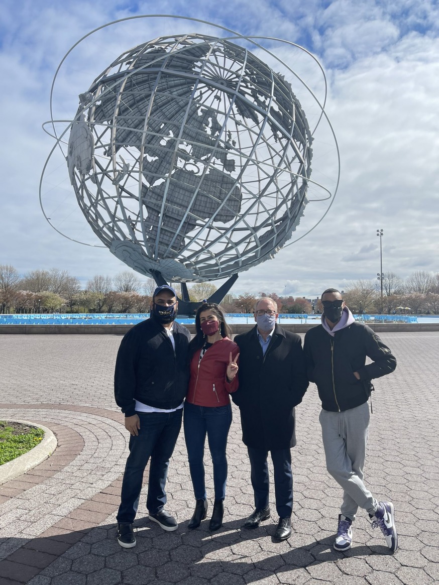 State Sen. Jessica Ramos and Scott Stinger at Flushing Meadows Corona Park on April 17 (Twitter)