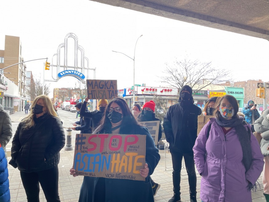 Western Queens residents held a rally to denounce Anti Asian violence in Sunnyside March 5 (Photo: Queens Post)
