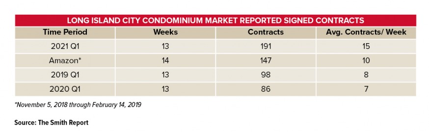 “With the vaccine rollout, there is a growing confidence among buyers in Long Island City and we saw this as the number of transactions in the first quarter easily surpassed the Amazon period,” Smith said.