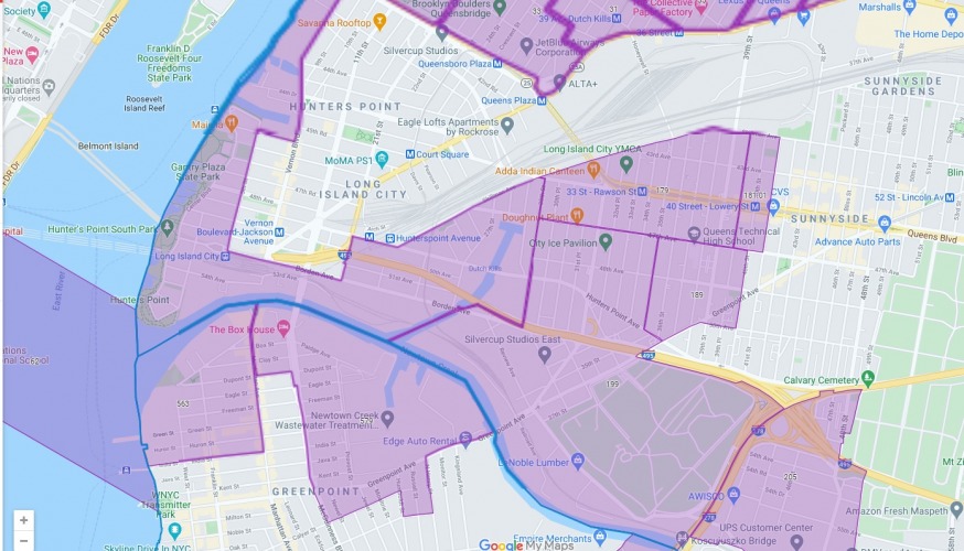 They include the Long Island City waterfront, the Flushing Creek, the Astoria waterfront–Hallets Cove peninsula, Austin Street in Forest Hills, 82nd Street in Jackson Heights, sections of Greenpoint, Brooklyn, and even Hudson Yards in Manhattan.