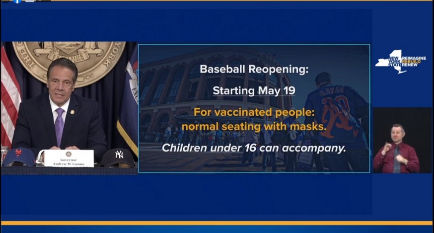 Cuomo said the rules will provide baseball fans with an added incentive to get vaccinated. He also said that unvaccinated fans will be able to get shots at Yankee Stadium and Citi Field just prior to the start of a ballgame.