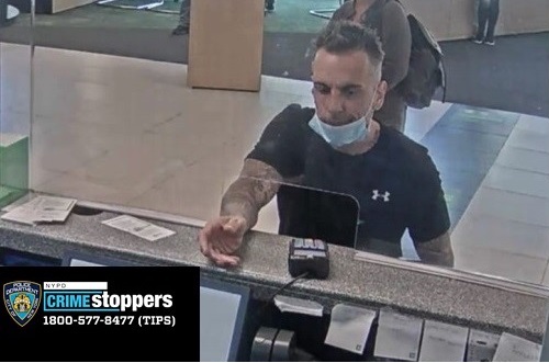 The suspect allegedly first struck on May 6 at a CitiBank in Court Square – where he passed a note to the teller demanding money, pretended to have a gun and made off with $1,115, according to the NYPD. Police said the heavily tattooed suspect then fled west on Jackson Avenue after the robbery.