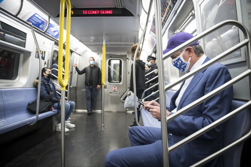 Mayor Bill de Blasio on the F train (Ed Reed/Mayoral Photography Office)