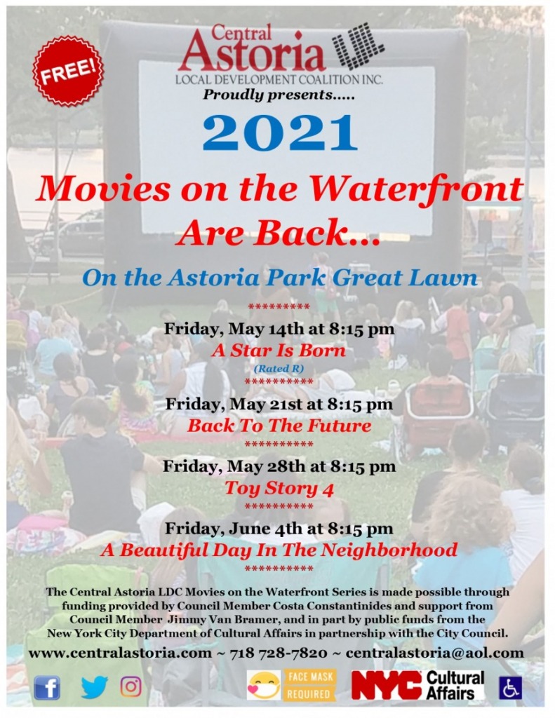 The movie nights are organized by the Central Astoria LDC with support from former Councilmember Costa Constantinides, Councilmember Jimmy Van Bramer and the New York City Department of Cultural Affairs. Organizers also thanked the 114th Precinct for helping to make the events possible.