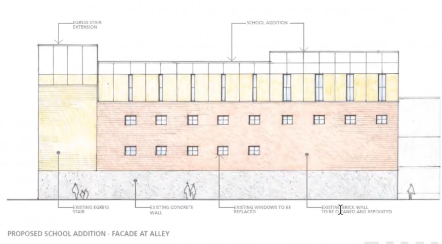 Although the planned expansion would be within the zoning limits for the property’s floor area and height, Wright said zoning regulations would require the fourth story to be set back in the front and rear – decreasing the square footage. The BSA application is to waive the setback requirements.