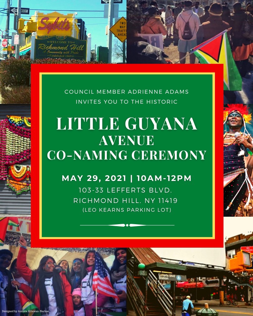 The intersection of Lefferts Boulevard and Liberty Avenue will be co-named to celebrate Guyanese-Americans. The event will begin at 10 a.m. at the parking lot of Leo F. Kearns Funeral Home, located at 103-33 Lefferts Blvd.