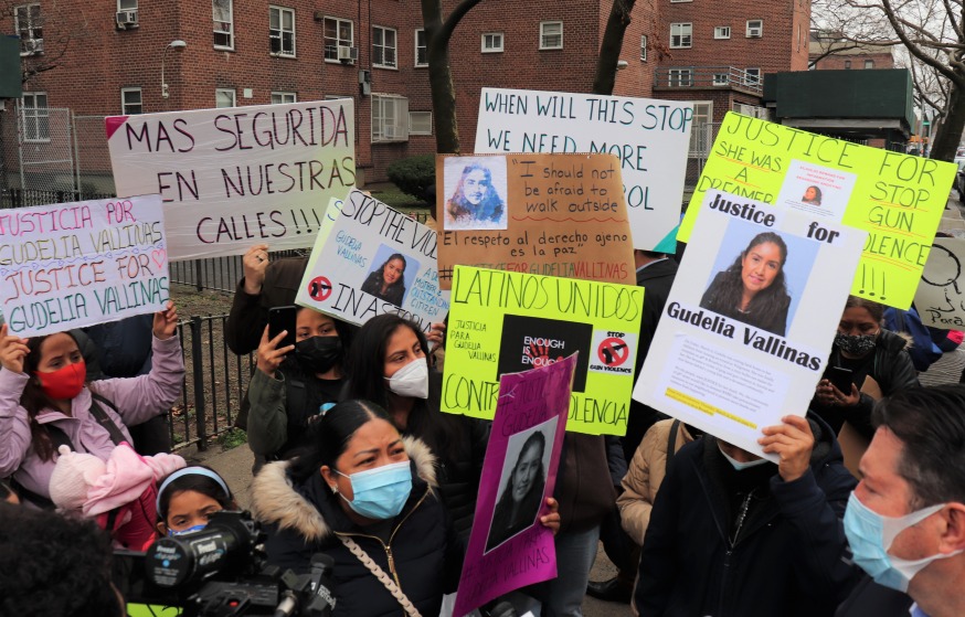 Several people held signs to demand justice for the killing of Gudelia Vallinas. (Photo: Michael Dorgan, Queens Post)