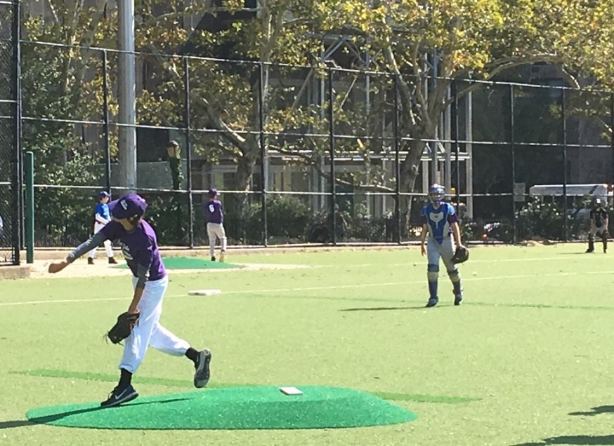 Nathan Murray on the mound pitching in a little league game in 2017 (Queens Post)