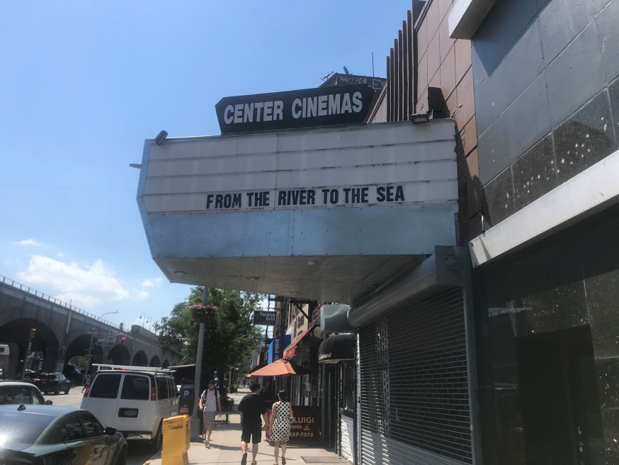 John Ciafone, the owner of the vacant cinema at 42-17 Queens Blvd., has been bombarded with e-mails and phone calls in recent days from people protesting the “From the River to the Sea” message that is on the cinema marquee.