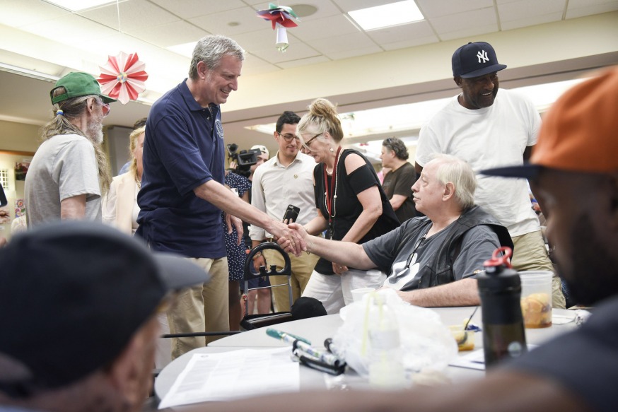Mayor Bill de Blasio visiting a Manhattan senior center in 2019 (Ed Reed/Mayoral Photography Office)