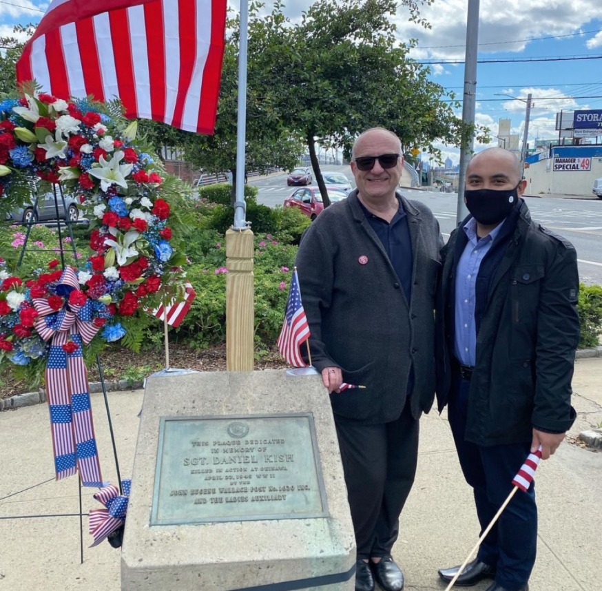 City Council candidate Steven Raga with community leader Tom Mituzas at the Blissville Veterans Memorial (Instagram)