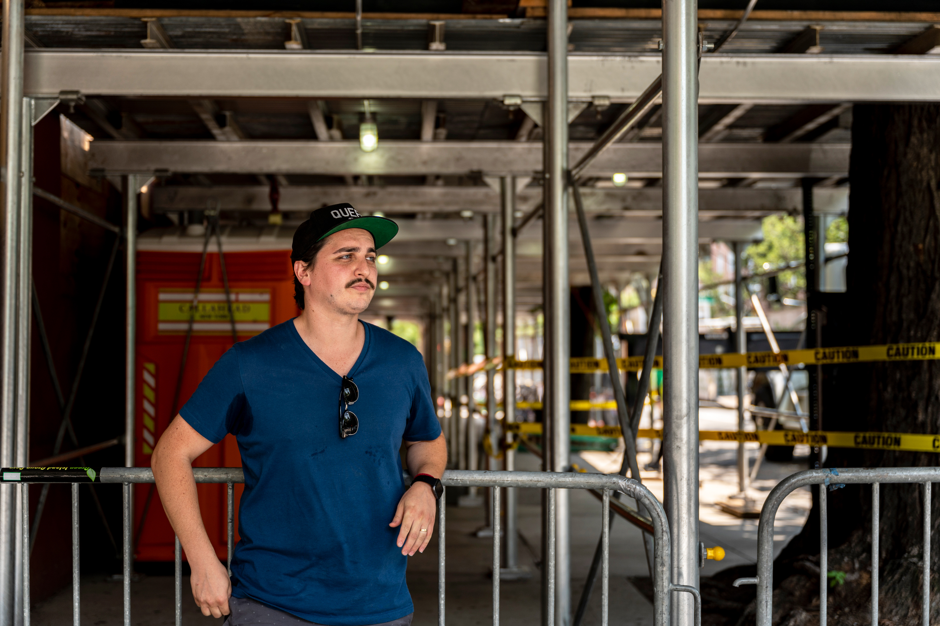 Hiram Alejandro Durán/THE CITY Andrew Sokolof Diaz stopped by his former Jackson Heights home after a fire destroyed his apartment at 89-07 34th Ave.