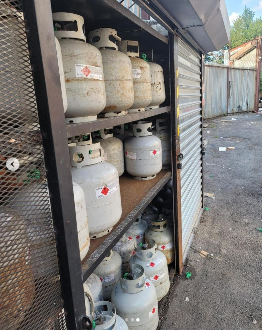 The flammable tanks were stored without a permit, according to the FDNY, and improperly stored in close proximity to the sidewalk creating “a grave risk of danger to the public.”