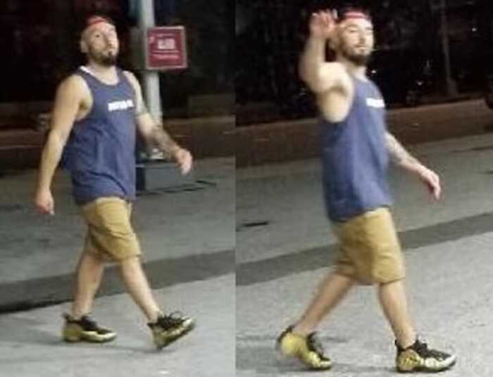 The NYPD released surveillance photos and a video that shows the man strutting through the Target store. He is a light-skinned man with dark hair, wearing a black mask, sleeveless shirts and dark pants.